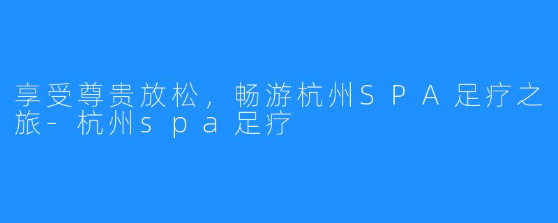 享受尊贵放松,畅游杭州SPA足疗之旅